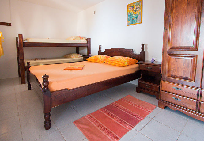La maison convient pour une famille de 4 à 6 personnes (si 2 enfants de moins de 12 ans), avec 2 chambres: 1 à lit double et 1 à lit double + lits superposés.