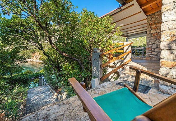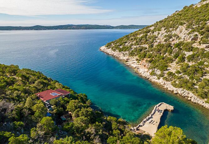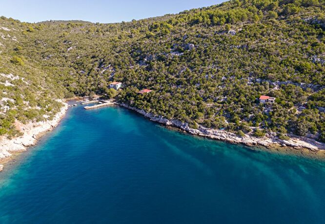 In einer Bucht an der Westküst,von allenWinden geschützt, das Haus ist mit Boot oder Auto erreichbar. Das Boot kann auf dem kleinen Naturhafen Ponton vor dem Haus halten. Wenn Sie mit dem Auto kommen, können Sie parken10 Minuten zu Fuß vom Haus.