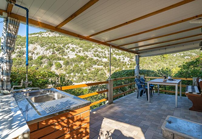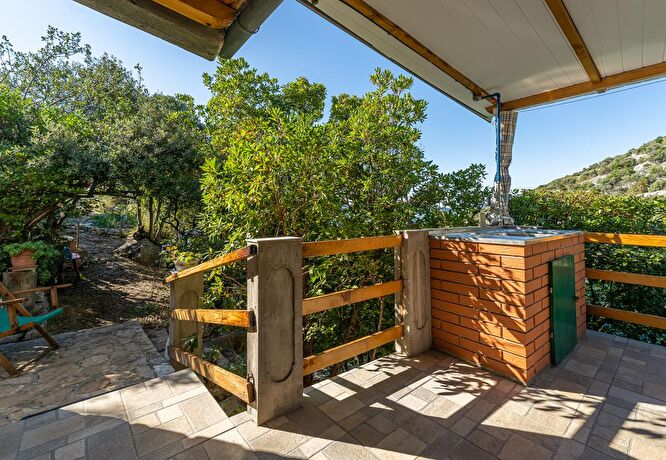 Das Haus verfügt über 2 Schlafzimmer (1mit Doppelbett,1 mit 2 Einzelbetten),eine Küche mit großer Terrasse Blick aufs Meer, eine Toilette und eine Dusche aussen.