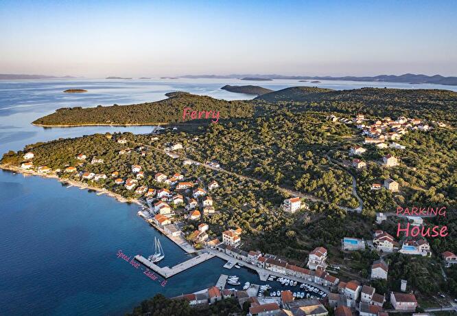 Iz is an island in the great tradition of fishing and farming, mainly olive trees and perpetuating the work of pottery. It has two main villages: Mali Iz and Veli Iz, and there are all amenities. It is connected by ferry to Zadar (with car) and fast boat for pedestrians. It is a place to enjoy a relaxing holiday: water sports, diving, walking in the countryside or along the sea, cycling, will discover the magnificent panorama of the archipelago, the hilltop Korinjak. Many beaches accessible by foot, car or boat all along the coast, pine forests and cicadas, the true Mediterranean atmosphere and a dozen small islands around it, to the delight of lovers of boating , fishing or just to discover secluded coves.