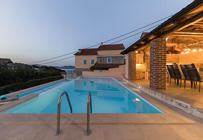 Near the center of town Mali Iz, this house with pool is surrounded by a garden with 3 double bedrooms, kitchen / dining room, 2 bathrooms and outdoor shower, it is suitable for a family of 6 persons. Its particularity: a summer living room of 30 m2, covered and airy, serving as kitchen with grill, sink, fridge and dining / living room. Very significant to make the most of the outdoors! Pleasant walk all along the sea.